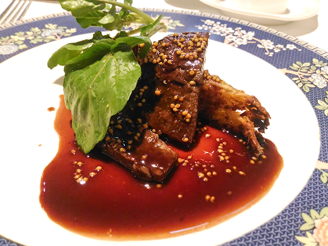 大好物のフォアグラです。香ばしい香りに、テンションがあがり、顔がにやけてしまいます。